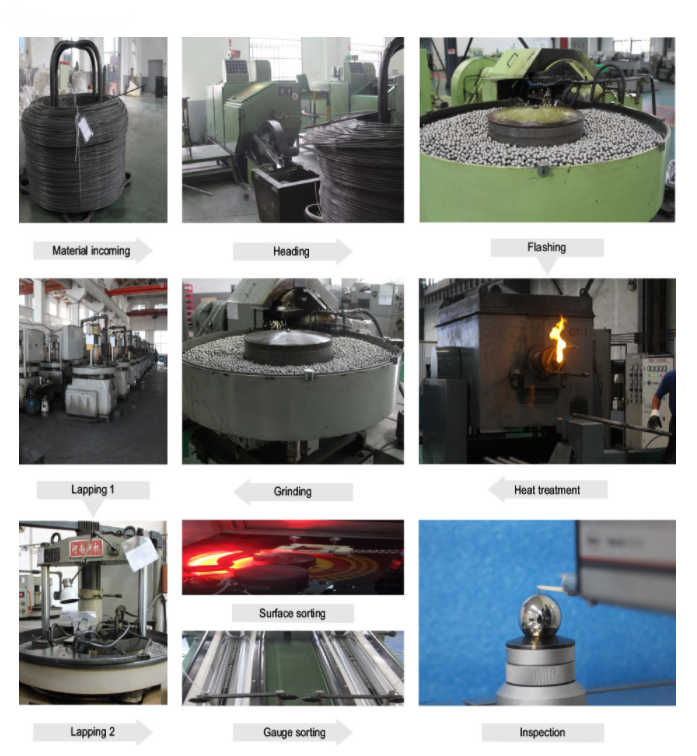 Using detectors and sorting machines and also100% hand picked to check and sorting steel balls. Photoelectric, eddy current, and vibration methods to select various defect balls, such as surface defects, shallow surface layer cracks, internal material defects.